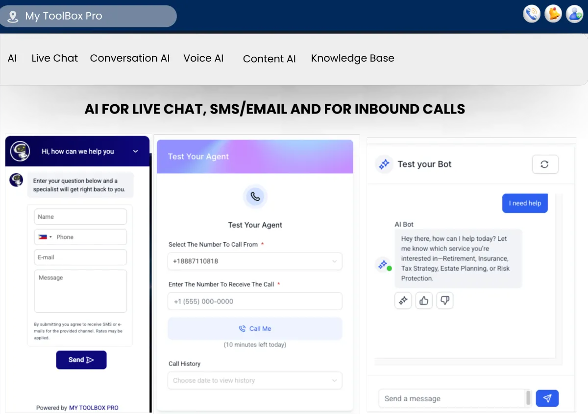 MyToolBox Pro brings the power of automation and AI to businesses of all sizes. Whether you're a solo agent or part of a growing team, our platform helps you work smarter, not harder. From capturing leads to closing sales, everything is built to save you time and boost your results—no tech skills needed.